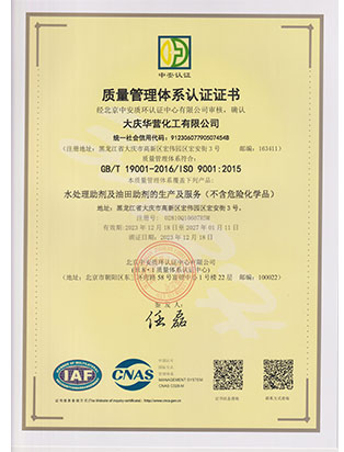 大慶華營化工有限公司成立于2006年7月10日,注冊資金3300萬元,公司類型為有限責(zé)任公司。位于大慶高新技術(shù)產(chǎn)業(yè)開發(fā)區(qū)宏偉園區(qū),是一家集油田助劑產(chǎn)品的研發(fā)、生產(chǎn)、銷售和技術(shù)服務(wù)為一體的現(xiàn)代化高新技術(shù)企業(yè)。公司注重科技創(chuàng)新,公司擁有18項(xiàng)自主知識產(chǎn)權(quán)。企業(yè)承擔(dān)過國家火炬計劃重點(diǎn)項(xiàng)目、國家科技型中小企業(yè)創(chuàng)新項(xiàng)目等,2011年被科技部火炬高新技術(shù)產(chǎn)業(yè)開發(fā)中心評為國家火炬計劃重點(diǎn)高新技術(shù)企業(yè)。公司十余種產(chǎn)品獲得中國石油天然氣集團(tuán)公司產(chǎn)品質(zhì)量認(rèn)可證書,其中粘穩(wěn)型驅(qū)油劑獲國家火炬計劃重點(diǎn)項(xiàng)目證書。公司憑借多年對大慶油田及周邊油田地質(zhì)情況的研究,可針對各油田地層特點(diǎn)調(diào)整產(chǎn)品的配方,更好地發(fā)揮各類油田助劑的性能。